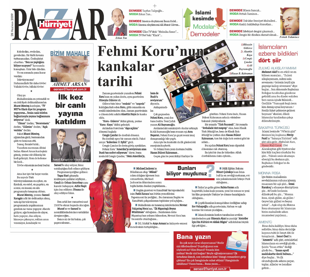 İslami kesimde "70’lerin şiiri" denince hiç kuşkusuz Necip Fazıl’ın "Sakarya Türküsü" adlı şiiri akla gelir. Abdullah Kars, Hasan Nail Canat, Ulvi Alacakaptan gibi tiyatrocular kim bilir kaç kez okudular bu şiiri... Yüksek sesle okumaya elverişli bu destansı şiir, Başbakan Erdoğan’ın da gözdesidir.