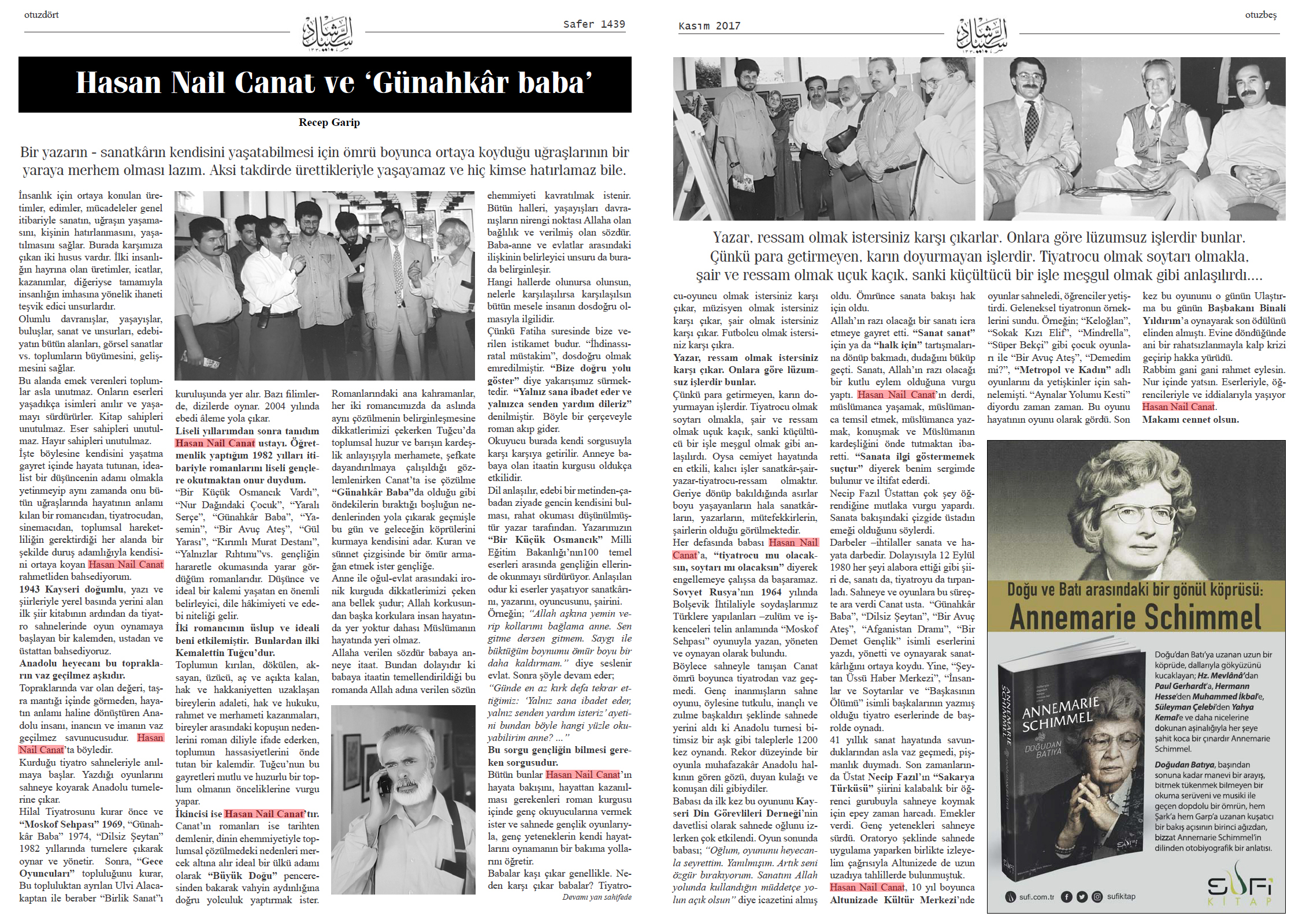Recep Garip / Hasan Nail Canat ve "Günahkâr Baba" Sebîlürreşad Dergisi / 01.11.2017 Bir yazarın - sanatkârın kendisini yaşatabilmesi için ömrü boyunca ortaya koyduğu uğraşlarının bir yaraya merhem olması lazım. Aksi takdirde ürettikleriyle yaşayamaz ve hiç kimse hatırlamaz bile. İnsanlık için ortaya konulan üretimler, edimler, mücadeleler genel itibariyle sanatın, uğraşın yaşamasını, kişinin hatırlanmasını, yaşatılmasını sağlar. Burada karşımıza çıkan iki husus vardır. İlki insanlığın hayrına olan üretimler, icatlar, kazanımlar, diğeriyse tamamıyla insanlığın imhasına yönelik ihaneti teşvik edici unsurlardır. Olumlu davranışlar, yaşayışlar, buluşlar, sanat ve unsurları, edebiyatın bütün alanları, görsel sanatlar vs. toplumların büyümesini, gelişmesini sağlar. Bu alanda emek verenleri toplumlar asla unutmaz. Onların eserleri yaşadıkça isimleri anılır ve yaşamayı sürdürürler. Kitap sahipleri unutulmaz. Eser sahipleri unutulmaz. Hayır sahipleri unutulmaz. İşte böylesine kendisini yaşatma gayret içinde hayata tutunan, idealist bir düşüncenin adamı olmakla yetinmeyip aynı zamanda onu bütün uğraşlarında hayatının anlamı kılan bir romancıdan, tiyatrocudan, sinemacıdan, toplumsal hareketliliğin gerektirdiği her alanda bir şekilde duruş adamlığıyla kendisini ortaya koyan Hasan Nail Canat rahmetliden bahsediyorum. 1943 Kayseri doğumlu, yazı ve şiirleriyle yerel basında yerini alan ilk şiir kitabının ardından da tiyatro sahnelerinde oyun oynamaya başlayan bir kalemden, ustadan ve üstattan bahsediyoruz. Anadolu heyecanı bu toprakların vazgeçilmez aşkıdır. Topraklarında var olan değeri, taşra mantığı içinde görmeden, hayatın anlamı haline dönüştüren Anadolu insanı, inancın ve imanın vazgeçilmez savunucusudur. Hasan Nail Canat'ta böyledir. Kurduğu tiyatro sahneleriyle anılmaya başlar. Yazdığı oyunlarını sahneye koyarak Anadolu turnelerine çıkar. Hilal Tiyatrosunu kurar önce ve "Moskof Sehpası" 1969, "Günahkâr Baba" 1974, "Dilsiz Şeytan" 1982 yıllarında turnelere çıkarak oynar ve yönetir. Sonra, "Gece Oyuncuları" topluluğunu kurar, Bu topluluktan ayrılan Ulvi Alacakaptan ile beraber "Birlik Sanat"ı kuruluşunda yer alır. Bazı filimlerde, dizilerde oynar. 2004 yılında ebedi âleme yola çıkar. Liseli yıllarımdan sonra tanıdım Hasan Nail Canat ustayı. Öğretmenlik yaptığım 1982 yılları itibariyle romanlarını liseli gençlere okutmaktan onur duydum. "Bir Küçük Osmancık Vardı", "Nur Dağındaki Çocuk", "Yaralı Serçe", "Günahkâr Baba", "Yasemin", "Bir Avuç Ateş", "Gül Yarası", "Kırımlı Murat Destanı", "Yalnızlar Rıhtımı" vs. gençliğin hararetle okumasında yarar gördüğüm romanlarıdır. Düşünce ve ideal bir kalemi yaşatan en önemli belirleyici, dile hâkimiyeti ve edebi niteliği gelir. İki romancının üslup ve ideali beni etkilemiştir. Bunlardan ilki Kemalettin Tuğcu'dur. Toplumun kırılan, dökülen, aksayan, üzücü, aç ve açıkta kalan, hak ve hakkaniyetten uzaklaşan bireylerin adaleti, hak ve hukuku, rahmet ve merhameti kazanmaları, bireyler arasındaki kopuşun nedenlerini roman diliyle ifade ederken, toplumun hassasiyetlerini önde tutan bir kalemdir. Tuğcu'nun bu gayretleri mutlu ve huzurlu bir toplum olmanın önceliklerine vurgu yapar. İkincisi ise Hasan Nail Canat'tır. Canat'ın romanları ise tarihten demlenir, dinin ehemmiyetiyle toplumsal çözülmedeki nedenleri mercek altına alır, ideal bir ülkü adamı olarak "Büyük Doğu" penceresinden bakarak vahyin aydınlığına doğru yolculuk yaptırmak ister. Romanlarındaki ana kahramanlar, her iki romancımızda da aslında aynı çözülmenin belirginleşmesine dikkatlerimizi çekerken Tuğcu'da toplumsal huzur ve barışın kardeşlik anlayışıyla merhamete, şefkate dayandırılmaya çalışıldığı gözlemlenirken Canat'ta ise çözülme "Günahkâr Baba"da olduğu gibi öndekilerin bıraktığı boşluğun nedenlerinden yola çıkarak geçmişle bugün ve geleceğin köprülerini kurmaya kendisini adar. Kuran ve sünnet çizgisinde bir ömür armağan etmek ister gençliğe. Anne ile oğul-evlat arasındaki ironik kurguda dikkatlerimizi çeken ana bellek şudur; Allah korkusundan başka korkulara insan hayatında yer yoktur, dahası Müslümanın hayatında yeri olmaz. Allah'a verilen sözdür babaya anneye itaat. Bundan dolayıdır ki babaya itaatin temellendirildiği bu romanda Allah adına verilen sözün ehemmiyeti kavratılmak istenir. Bütün halleri, yaşayışları davranışların nirengi noktası Allah'a olan bağlılık ve verilmiş olan sözdür. Baba-anne ve evlatlar arasındaki ilişkinin belirleyici unsuru da burada belirginleşir. Hangi hallerde olunursa olunsun, nelerle karşılaşılırsa karşılaşılsın bütün mesele insanın dosdoğru olmasıyla ilgilidir. Çünkü Fatiha suresinde bize verilen istikamet budur. "İhdinassıratal müstakim", dosdoğru olmak emredilmiştir. "Bize doğru yolu göster" diye yakarışımız sürmektedir. "Yalnız sana ibadet eder ve yalnızca senden yardım dileriz" denilmiştir. Böyle bir çerçeveyle roman akıp gider. Okuyucu burada kendi sorgusuyla karşı karşıya getirilir. Anneye babaya olan itaatin kurgusu oldukça etkilidir. Dil anlaşılır, edebi bir metinden-çabadan ziyade gencin kendisini bulması, rahat okuması düşünülmüştür yazar tarafından. Yazarımızın "Bir Küçük Osmancık" Milli Eğitim Bakanlığı'nın 100 temel eserleri arasında gençliğin ellerinde okunmayı sürdürüyor. Anlaşılan odur ki eserler yaşatıyor sanatkârını, yazarını, oyuncusunu, şairini. Örneğin; "Allah aşkına yemin verip kollarımı bağlama anne. Sen gitme dersen gitmem. Saygı ile büktüğüm boynumu ömür boyu bir daha kaldırmam." diye seslenir evlat. Sonra şöyle devam eder; "Günde en az kırk defa tekrar ettiğ