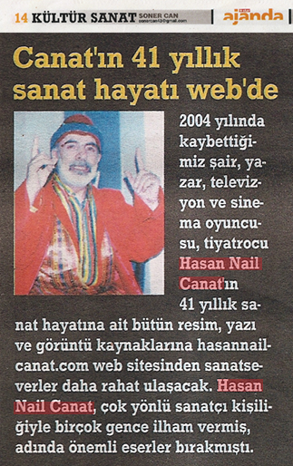 2004 yılında kaybettiğimiz şair, yazar, televizyon ve sinema oyuncusu, tiyatrocu Hasan Nail Canat'ın 41 yıllık sanat hayatına ait resim, yazı ve görüntü kaynaklarına hasannailcanat.com web sitesinden sanatseverler daha rahat ulaşacak. Hasan Nail Canat, çok yönlü sanatçı kişiliğiyle birçok gence ilham vermiş, ardında önemli eserler bırakmıştı.