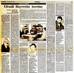 Açık Oturum / Efendi Hayrettin üzerine Zaman Gazetesi / 05.12.1986 Efendi Hayrettin şair ve yazar İbrahim Sadri'nin yazıp yönettiği bir tiyatro oyunu. 21-23 Kasım günleri Üsküdar Dilek Tiyatrosu'nda sahneye konan Efendi Hayrettin büyük bir ilgiyle karşılandı. Efendi Hayrettin en geniş anlamda zihniyet değişimini konu edinen ve Hayrettin'in şahsında ve çevresinde gelişen olaylara eleştiri getiren bir oyun. Evkaf Müdürlüğü'nde basit bir memur olarak çalışan Hayrettin'in tekdüze ve amaçsız hayatı toplumsal yapıya getirilen eleştiriler eşliğinde dile getirilir oyunda. Efendi Hayrettin kuşak ve zihniyet çatışmasını dile getiren bir oyun. Toplumsal bir panorama da denebilir Efendi Hayrettin için. Efendi Hayrettin oyunu 5 Aralık'ta (bugün) Karagümrük Hakan Sineması'nda gösterime sunuluyor. Çağrı Sahnesi Yönetmeni Ulvi Alacakaptan, Genç Adam Sahnesi Yönetmeni ve oyun yazarı Hasan Nail Canat ve İbrahim Sadri'nin katıldığı bu açık oturumda Efendi Hayrettin'i tartışmak istedik. Katılanlar: Hasan Nail Canat, İbrahim Sadri, Ulvi Alacakaptan Yöneten: Mehmet Metiner Mehmet Metiner - Oturumumuzun konusu Efendi Hayrettin. Arkadaşımız İbrahim Sadri'nin yazıp yönettiği Efendi Hayrettin oyunu üzerinde konuşmak, oyunu değerlendirmek ve eleştirmek üzere burada bulunuyoruz. Ben ilk sözü Hasan Nail Canat'a bırakmak istiyorum. Buyrun sayın Canat!.. Hasan Nail Canat - Ben oyunu bir tiyatro olayı olarak değil de, Müslümanların yaptığı tiyatro oyunlarından biri olarak değerlendirmek isterim. Hem arkadaşları yakinen tanıyoruz, hem oyunun sahneye konma şeklini yakinen biliyoruz, bu yüzden diyorum ki arkadaşların yaptığı oyunu şartları içerisinde değerlendirmek gerekiyor. Oyunun temelinde yanlışlıklar yok. Güzel bir fikir platformuna oturmuş oyun. Yani Efendi Hayrettin anlatıldığı hayat çizgisi içinde güzel bir platforma oturtulmuş. Bu platformda tenkid edilen şeyler de oyuna güzel monte edilmiş. Arkadaşları, kısa deneyimleri içerisinde, bulundukları şartlarda böyle güzel bir oyun çıkardıklarından dolayı öncelikle tebrik etmek lazım. Tabii oyun bu haliyle yeterli mi, seyirci karşısına bu şekliyle çıkması doğru mu? Bu eleştiriye açık biraz. Eleştirilebilir. Bir kere oyun -İbrahim'e de daha önce söylediğim gibi- çok kısa tablolardan oluşmuş. Yani o tablolar sağlam diyaloglarla kurulmuş tablolar halinde geliştirilebilirdi. Evet, sulandırılmamış, çok ciddi ele alınmış Efendi Hayrettin'in hayatı ve çevresinde gelişen olaylar. Ama aynı ciddi esprilerle tablolar daha çok geliştirilebilirdi. Şimdi kısa olunca şöyle bir hata ortaya çıkıyor: Müzik, çok güzel hazırlanan müzik sırıtmaya başlıyor. Tablolar geliştirilirse müzik daha yerine oturur tahmin ediyorum. Bir de ben daha önce metni okudum. Metinde seyredince anladım, birtakım düzeltmeler yapılmış. Bir takım makaslamalar da yapılmış. Bu makaslamalar zannederim oyunun bütünlüğünün bozulduğu farkedilmeden yapılmış. Mesela, o şehrin gürültüsünü anlatan sahnesi veya gürültülü bir medeniyetin geldiğini simgeleyen sahnesi, arka-planını bilmeyen bir izleyici için çarpışan otolan anlatan bir sahne gibi geliyordu. O sahnede birşeyler verilmeliydi. Yani o araçları kullanan şoförler hiç değilse işaretlerle birşeyler söylemeliydi birbirlerine... Zannedersem bu anlatılmak isteniyordu. Yani şoförler, insanlann ilişkilerinin bozulduğunu anlatmak istiyorlardı. Bayram sahnesi çok hoşuma gitti. Bayramı seyreden Efendi Hayrettin ile oğulları arasında geçen diyaloglar gerçekten cesaretle söylenmiş, tenkid etmek istediğimiz sisteme karşı çok cesaretle söylenmiş diyaloglardı. Bir de şunu söylemeden geçemeyeceğim: İbrahim'de var olan bir şey var. İbrahim'in şairliğini biliyoruz. Bu şiir dilini tiyatroya öylesine aktarmış ki, yani tiyatro seyircisini adeta unutmuş. Şiiri iyi bilen arkadaşlarıyla konuşuyor gibi İbrahim. Ama tiyatro diyalogu, şiir dilinden biraz daha farklı bildiğimiz kadarıyla. Yani bu şiir dilinden biraz kurtarması lazım diyalogları. Bunun yanında, bu kısa tiyatro deneyimleri olan arkadaşların bu kadar başarılı olabileceklerini tahmin etmiyordum. Mesela, Hüseyin (Goncagül) bu rolünün (Efendi Hayrettin M.M.) altından kalkardı, ama böylesine başarılı olacağını hiç tahmin etmezdim. Çok büyük bir başarıyla götürdü oyunu sonuna kadar. İbrahim başanlı bir oyun yazan olduğu gibi başarılı bir oyuncu olarak da karşımıza çıktı. Öbür arkadaşlar da iyi desteklediler bu iki başarılı sanatçıyı. Oyunda tenkid edilecek pek fazla birşey yok aslında. Başta söylediğim gibi temel çok güzel. Şimdi bu tenkid edilen kısa tablolar, oyunun fazlasıyla doyurucu olmaması gibi hususlar, imkansızlıktan ileri geliyor. Eğer prova yapacak bir salon bulabilselerdi, bir ay sürekli prova yapabilselerdi, herhalde bunlar olmazdı. Söyleyeceklerim bu kadar benim. Mehmet Metiner - Ulvi sen ne söylemek istersin oyun hakkında? Nasıl buldun oyunu, nasıl değerlendiriyorsun? Ulvi Alacakaptan - Aslında Hasan Nail Canat'ın söylediklerinden farklı birşey söylemeyeceğim. Oyun hakkında bana hemen sıcağı sıcağına sorulduğu zaman şöyle dedim: Oyunun metni güzel, ama gerçekleştirme o kadar iyi değil. Ben aslında bölümlerden oluşan, yani kaba tabiriyle dramatik olmayan bir tiyatro biçimine daha yatkınım. Fakat Hasan Nail Canat'ın da işaret ettiği gibi, Efendi Hayrettin oyununda bölümler çok kopuk kopuk geliyor. Yani seyircinin olayı izlemesi zorlaşıyor. Bence metinden çok bu, gerçekleştirmeden ileri geliyor. Meselâ, oyunda hem şarkıları besteleyen, hem de oyunda çalıp söyleyen Barbaros Ceylan'ın sahneye girip çıkmâsı yanlış bir reji olmuş. Sahneye girerken çekine çekine giriyor, ondan sonra son lafları kaçarken sö