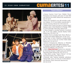 [Tiyatro/Gösteri] Zaman Gazetesi / 21.01.2006 Zaman Gazetesi Genel Yayın Müdürü Ekrem Dumanlı'nın Son Duruşma adlı oyunu 27 Ocak 2006 saat 20:30'da Fırat Kültür Merkezi'nde sahnelenecek. 0212 517 46 97 Reşat Nuri Güntekin'in aynı adlı eserinden uyarlanan Çalıkuşu, 25-29 Ocak tarihleri arasında Şehir Tiyatroları Ümraniye Sahnesi'nde. 0216 634 26 70 Altıdan Sonra Tiyatro'nun geçen yıl büyük beğeni toplayan oyunu Ortak Bölenlerin En Büyüğü-OBEB 23 Ocak'ta Beyoğlu'ndaki Maya Sahnesi'nde. Yılmaz Erdoğan'ın yönettiği Haybeden Gerçeküstü Aşk, 21-29 Ocak tarihleri arasında Beşiktaş Kültür Merkezi'nde. 0212 260 11 56 Aytekin Özen'in yönettiği Çiçek, Patron, Böcek yarın Yunus Emre Kültür Merkezi'nde. 212 661 19 42 Zafer Ergin ve Deniz Türkali'nin oynadığı Kuklacı adlı yeni oyun 26 Ocak saat 21.00'de Profilo Kültür Merkezi'nde. 212 216 93 14 Semaver Kumpanya'nın Süleyman ve Öbürsüler adlı oyunu bugün İzmit Halk Eğitim Merkezi'nde. Yanlışlıklar Komedisi'ni bugün saat 20.00'de Tiyatro Pera'da izleyebilirsiniz. 0212 245 44 60 Bizbize Hasan Nail Canat Tiyatrosu'nun sahnelediği "Tarçın Bey Evleniyor" başlıklı oyunu yarın 18.00'de Altunizade Kültür Merkezi'nde. 0212 310 12 53 Oktay Rıfat'ın yazdığı "Yağmur Sıkıntısı", 24 Ocak saat 20.30'da Haldun Taner Sahnesi'nde. Zümrüdü Anka Tiyatrosu tarafından sahnelenen 'Hasreti Fatih' oyunu, 22 Ocak saat: 15.30'da Bahçelievler Belediye Tiyatro Salonunda sahnelenecek. 0212 441 36 80 |